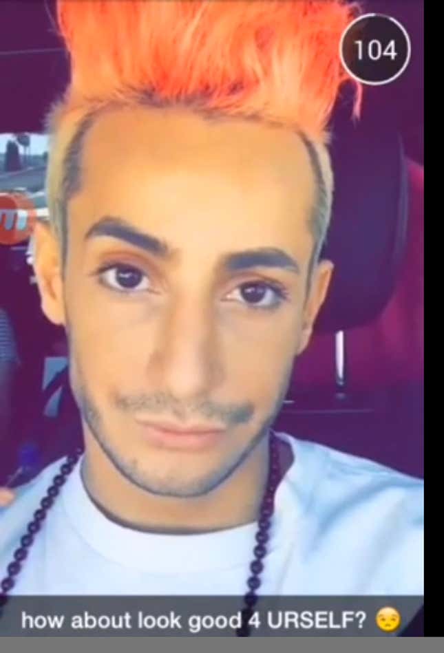 ariana grande’s brother didn’t have a seat. he was seat filler for big sean. when they came back to their seat, he shared a seat with some woman. is his default state coked out? that’s what it seems like.