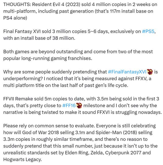 I find it really disingenous how people are saying this one’s not a real Final Fantasy because it’s an action/RPG hybrid, as if one of the most acclaimed games in the series isn’t an isometric tactics game, and two of the numbered entries aren’t MMOs. Final Fantasy isn’t defined by picking your party’s attack commands… Read more